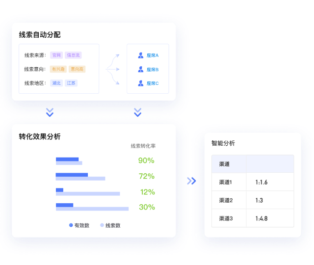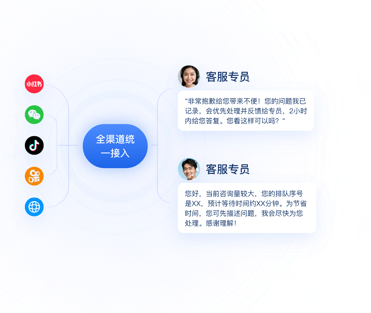 全渠道统一工作台,减少切换平台的时间成本;智能分配与路由,确保客户咨询快速得到处理